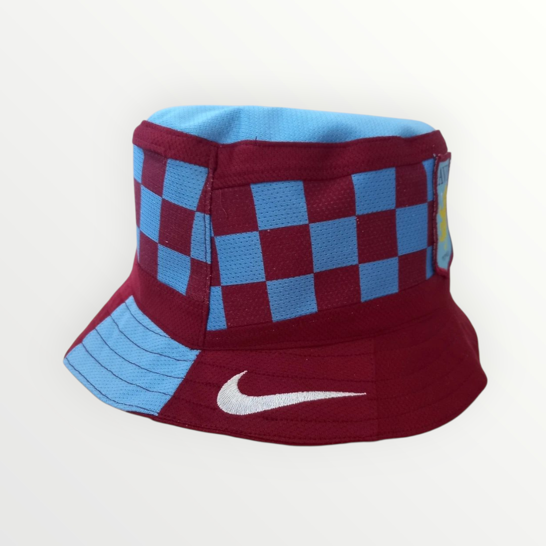 Bucket Hat Info: This hat is made from a damaged 2010-11 Villa home shirt. The hat has the Villa badge and Nike logo on the sides.